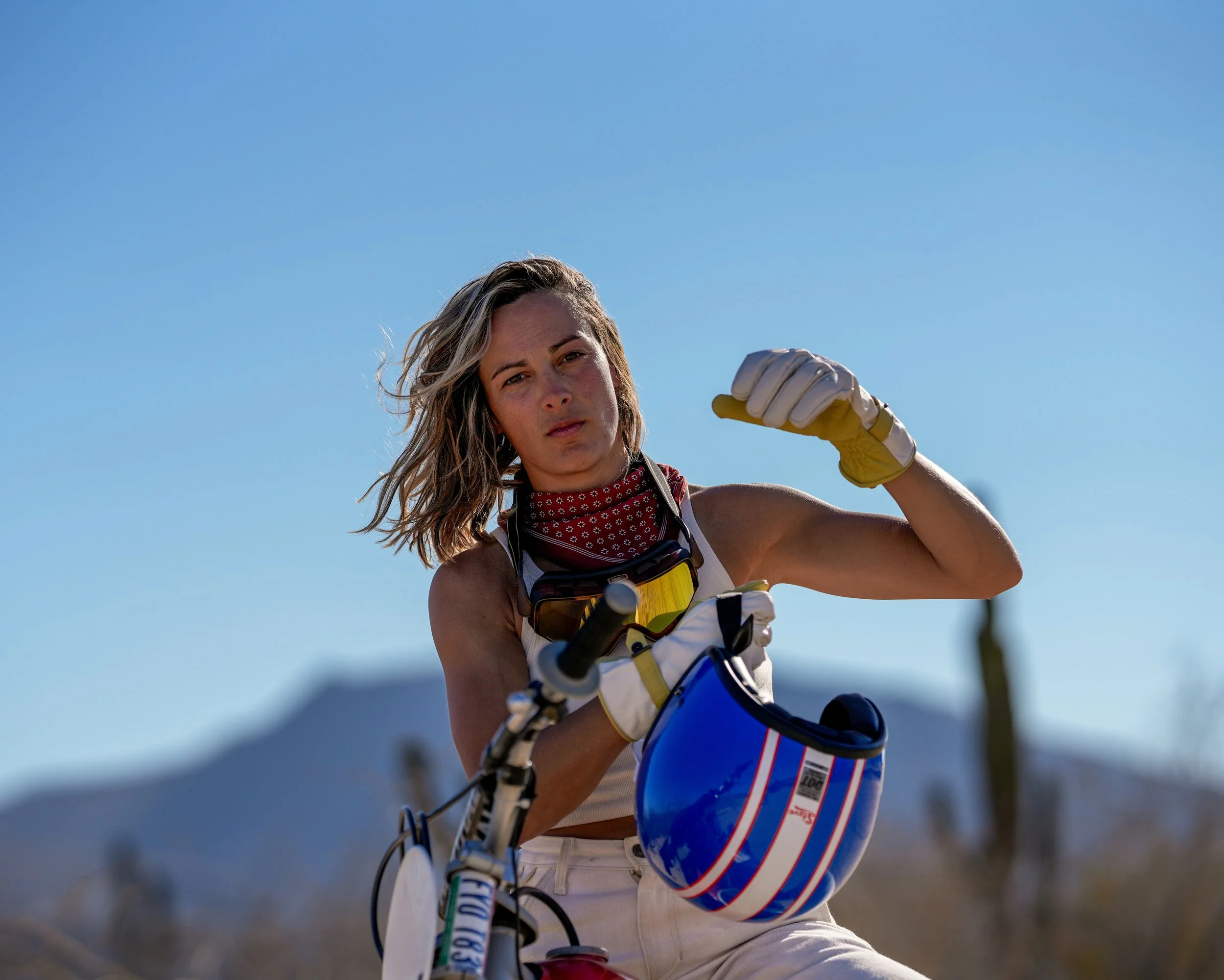 When she’s not on set, she’s in Baja—riding dirt bikes, surfing, and chasing whatever comes next. The cameras may stop rolling, but she never does.